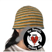 黄色、緑、白の3色で編んだボーダーのクラッシャーハットです。